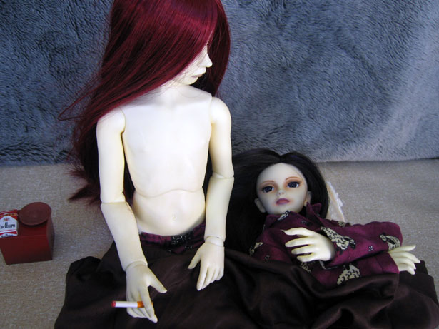 | Zafkiel: I wish you wouldn't smoke in bed. Mikael: Sorry. Zafkiel: That's okay. *yawn* *stretch* |