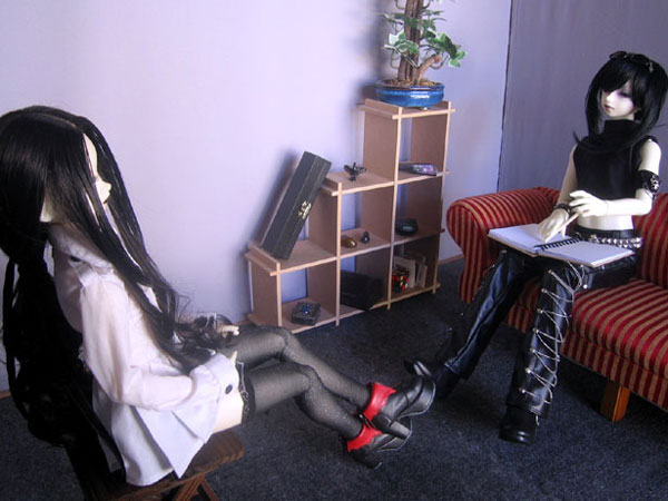 | Kael: Okay, now just sit with your hands in your lap.. that's right. Now turn your head so that you're facing towards me.. Rafariel: Like this? Kael: Tilt it down a little bit.. yep, that's right. Rafariel: ... Kael: Now, don't move. |